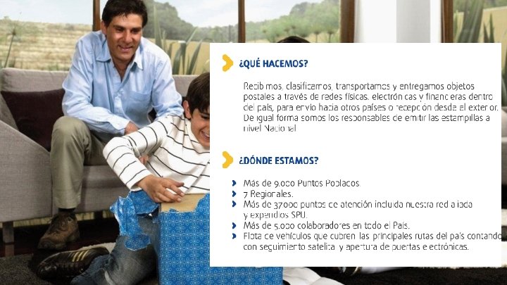 Beneficios Simplicidad, porque no requiere intermediario aduanero al operarse bajo el régimen de tráfico postal y envíos urgentes. Acceso a la extensa red postal de 4 -72, con más de 190 puntos en el territorio nacional, facilitando a las regiones oportunidades en el mercado internacional. Competitividad, porque le permite al exportador ahorrar dinero gracias a sus tarifas económicas y trámites de exportación. Tranquilidad, ya que incluye seguro con cubrimiento del 100% sobre el valor real de la mercancía. Asesoría y acompañamiento durante todo el proceso exportador. Trazabilidad de su envío.