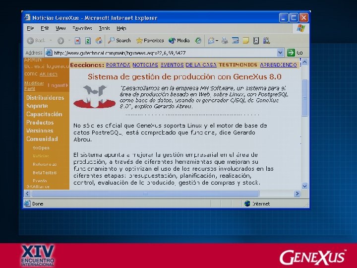 Después de Gene. Xus 8. 0 Gene. Xus versión “YI” Plataformas My. SQL EJB. NET Compact Framework Web Upload Control Client Side Validation Business Components Patterns Traducción automática Treeview Control