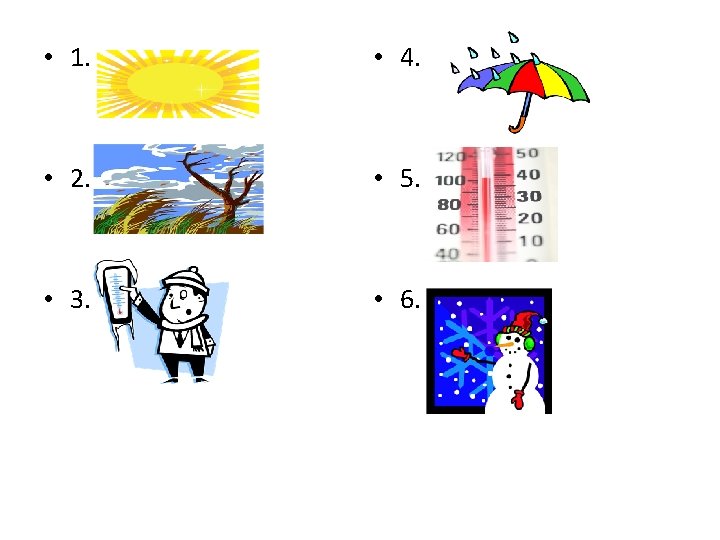 ¿Te acuerdas? (Do you remember? ) • Number 1 -6 on your QPC • Write each weather term