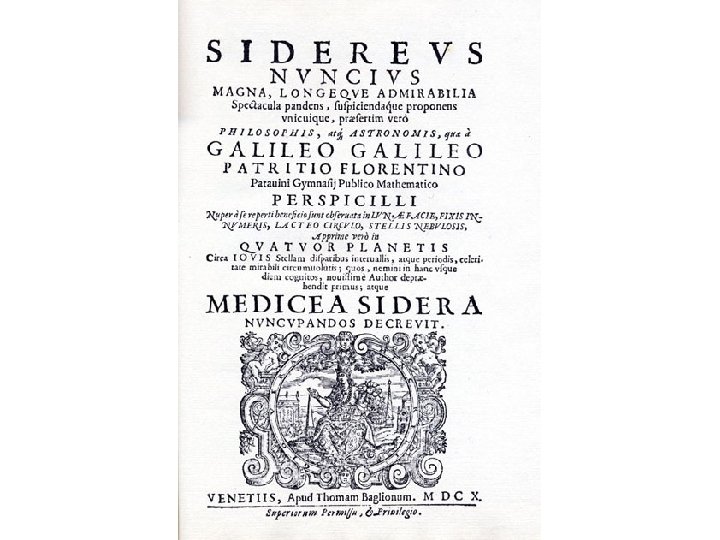 “El Mensajero Sideral”, folleto escrito por Galileo en 1610