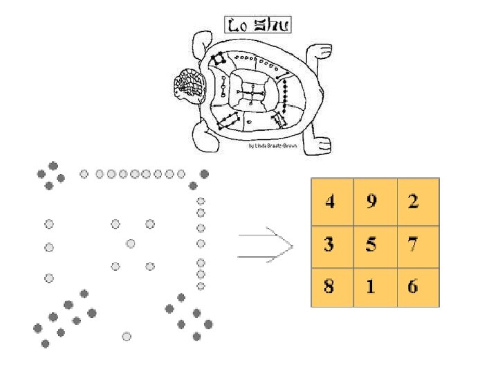 Il pescatore portò la tartaruga all’imperatore e i matematici al suo servizio studiando quei segni, scoprirono una imprevedibile struttura: un quadrato di numeri con somma costante 15 su ogni riga, colonna o diagonale. Lo Shu, così venne battezzato questo quadrato numerico, diventò uno dei simboli sacri della Cina, rappresentazione dei più arcani misteri della Matematica e dell’Universo.
