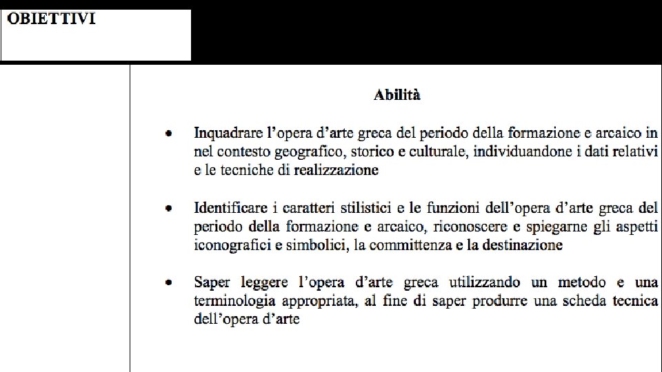 Conoscenza Abilità Competenza risultato dell’assimilazione di informazioni attraverso l’apprendimento. Le conoscenze sono un insieme di fatti, principi, teorie e pratiche relative ad un settore di lavoro o di studio. Nel contesto del Quadro europeo delle qualifiche le conoscenze sono descritte come teoriche e/o pratiche indicano le capacita di applicare conoscenze e di utilizzare know-how per portare a termine compiti e risolvere problemi. Nel contesto del Quadro europeo delle qualifiche le abilita sono descritte come cognitive (comprendenti l’uso del pensiero logico, intuitivo e creativo) o pratiche (comprendenti l’abilita manuale e l’uso di metodi, materiali, strumenti comprovata capacita di utilizzare conoscenze, abilita e capacita personali, sociali e/o metodologiche, in situazioni di lavoro o di studio e nello sviluppo professionale e personale. Nel contesto del Quadro europeo delle qualifiche le competenze sono descritte in termini di responsabilita e autonomia.