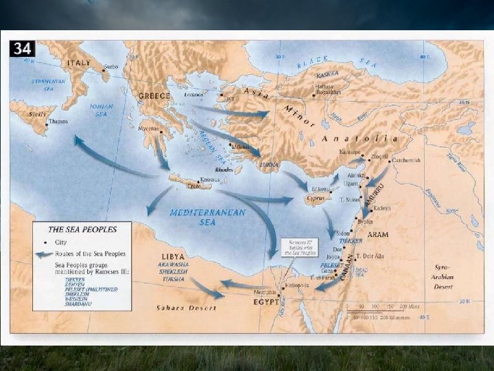 Iron Age Rulers of Southwest Asia • Bronze Age Collapse (c. 1200 BCE) – Sudden widespread collapse of civilizations throughout the Eastern Mediterranean world – Cause Unknown: Possibilities include volcanic eruptions, earthquakes, invasions by new Semitic and Indo-European groups (Sea Peoples), new warfare technology (iron weapons) – Affected Egyptians, Babylonians, Hittites, Canaanites, Minoans, and Mycenaean Greeks