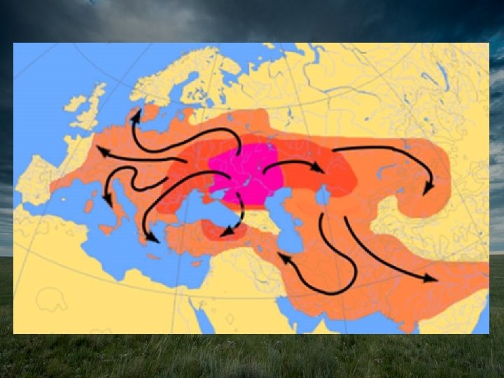 Indo-Europeans • As they settled in different parts of Europe and Asia, they also spread their language, which developed into many different languages we know today such as English, Spanish, German, Polish, Farsi, Hindi • A later Indo-European group, the Scythians, dominated the Steppe and developed cavalry armies (soldiers mounted on horses) and the composite bow (which can be shot while riding)