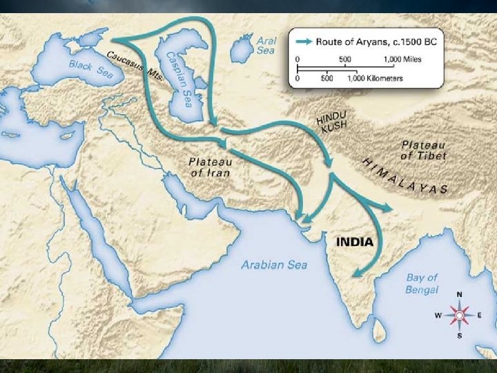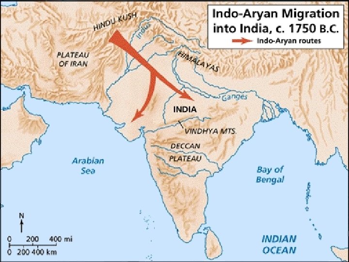 The Aryan Migration into India • Around 1500 BCE Indo. European nomads from Central Asia migrated into Iran, Asia Minor, and India • Indus Valley Civilization went into decline at the same time, so historians once believed that the Aryans invaded and conquered India • The evidence now points to a slow migration and process of acculturation, or combining of cultures