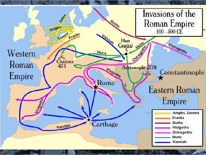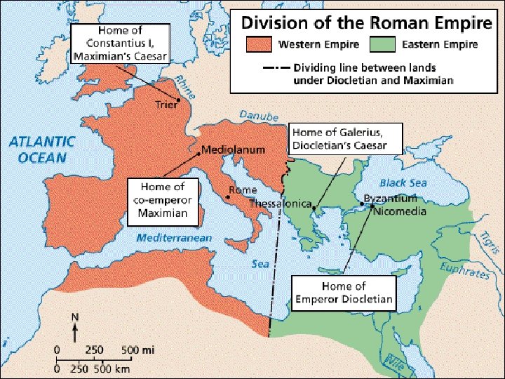 Emperor Justinian (reign 527 -565) • Rebuilt Constantinople and made it even better • Successfully reconquered Italy, Southern Spain, and part of North Africa • Reorganized the laws of Rome (Justinian’s Code) • Bubonic Plague struck the Empire, killing almost 50% of the population • Reconquered land was lost • Justinian survived but stayed sick for life