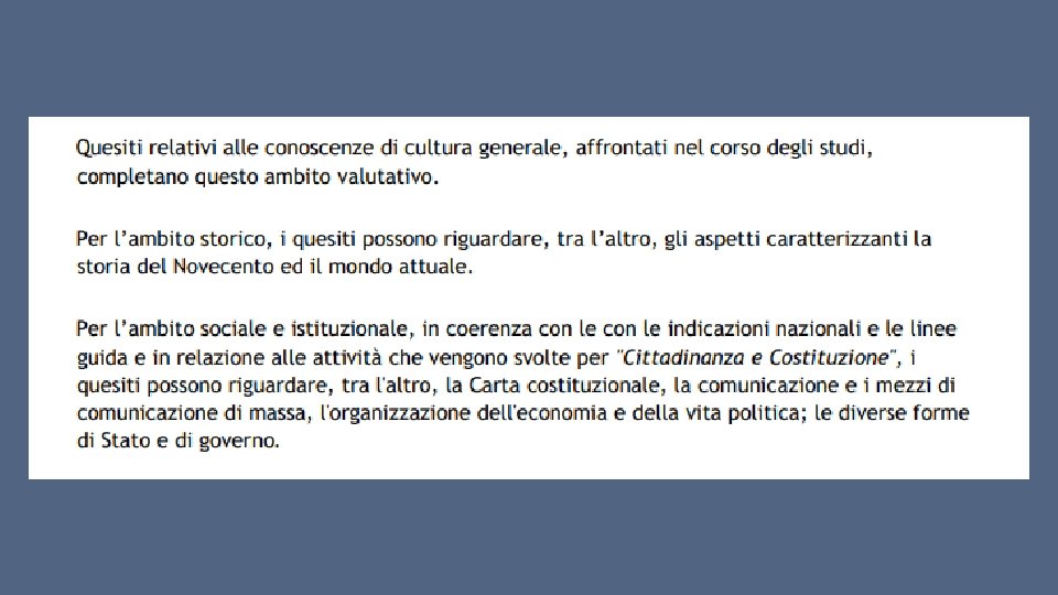 Ecco citati alcuni articoli che ci sembravano particolarmente importanti: art. 1: «L'Italia è una Repubblica democratica, fondata sul lavoro. La sovranità appartiene al popolo, che la esercita nelle forme e nei limiti della Costituzione» . art. 2: «La Repubblica riconosce e garantisce i diritti inviolabili dell'uomo, sia come singolo sia nelle formazioni sociali ove si svolge la sua personalità, e richiede l'adempimento dei doveri inderogabili di solidarietà politica, economica e sociale» . * Dichiarazione Universale dei Diritti dell’Uomo, ONU, Dicembre 1948 art. 3: «Tutti i cittadini hanno pari dignità sociale e sono eguali davanti alla legge, senza distinzione di sesso, di razza, di lingua, di religione, di opinioni politiche, di condizioni personali e sociali» . art. 32: «La Repubblica tutela la salute come fondamentale diritto dell'individuo e interesse della collettività, e garantisce cure gratuite agli indigenti. Nessuno può essere obbligato a un determinato trattamento sanitario se non per disposizione di legge» .