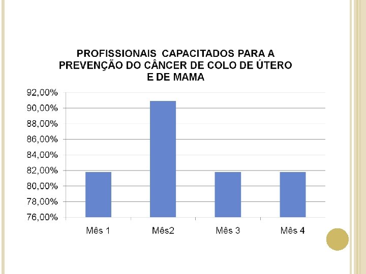 Meta: Capacitar 100% dos profissionais para a prevenção do câncer de colo de útero e de mama de acordo com os protocolos adotados pela UBS. Indicador: Número de profissionais da UBS que participaram da reunião / Número de profissionais que fazem parte da equipe da UBS.
