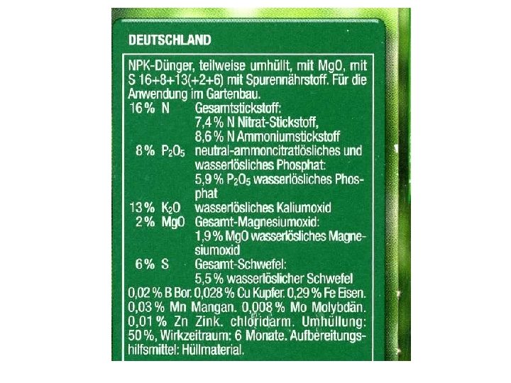 Alltagsbezug Bezugsquelle Supermarkt Sprache: Eisen, Nitrat -Stickstoff