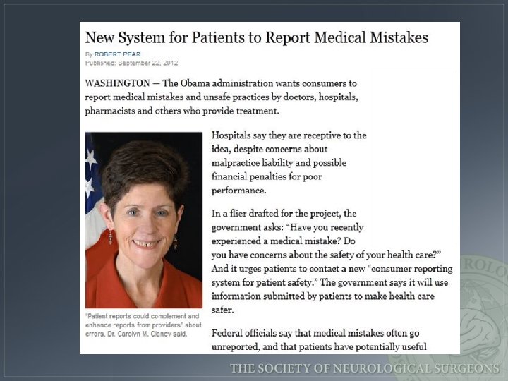 Why Safety as priority? • Ethical obligation to provide reliably safe high quality care • Complexity of care and potential for inadvertent harm • Regulation, Pay for performance • Opportunities to be more efficient • Malpractice Premiums • We will all be patients some day
