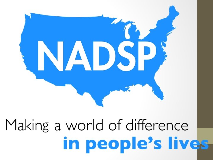 Small Group Exercise 2 • Create a role play in your group that addresses that particular tenet. Get creative and have some fun but devise your own “encounter” to share with your colleagues when we reconvene. • The power of role play in bringing the Code to a real life and practical application is profound • Please remember that role plays MUST be respectful in their language and the “acting” that takes place National Alliance for Direct Support Professionals (NADSP) • Choose ONE of the tenets of the Code of Ethics