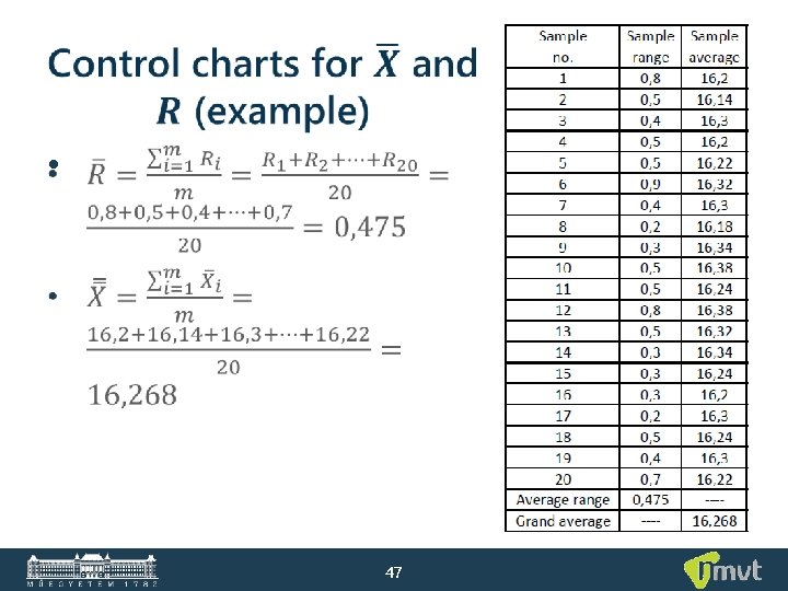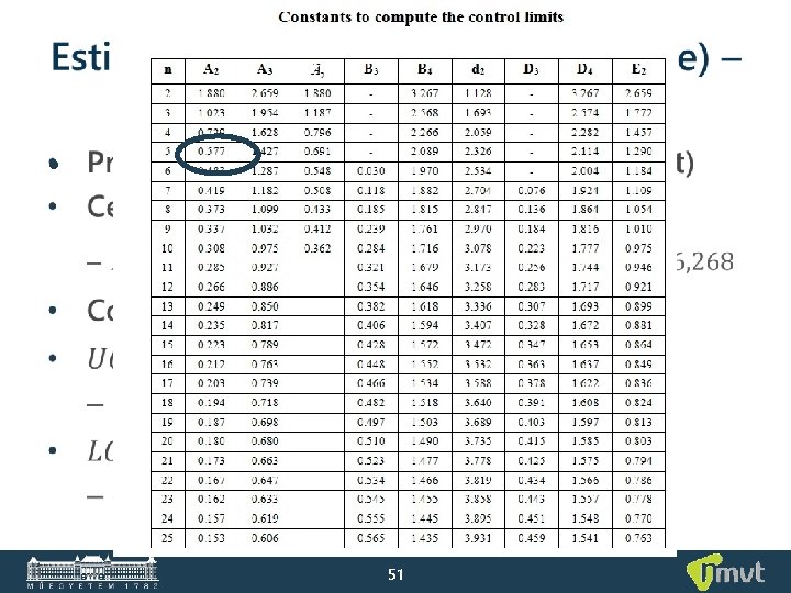 Estimating the parameters (example) – R chart • 2021. 03. 11. 49 49 x