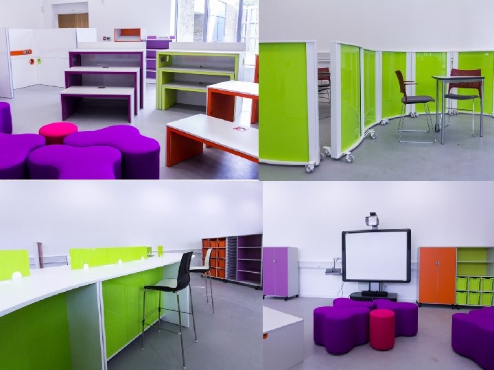 Lo spazio classe Lo spazio della classe si offre in forme modulari per prestarsi a una varietà di configurazioni, dai modelli più tradizionali ai modelli di lavoro in gruppi, con arredi pensati per favorire un’agile composizione e scomposizione dell’ambiente e per accompagnare l’alternarsi delle diverse attività e fasi di lavoro.