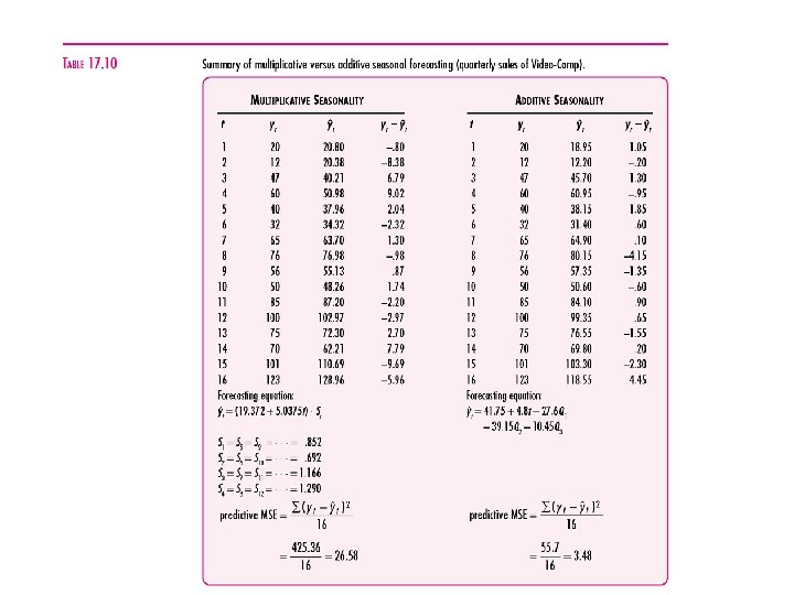 Forecasting Using Linear and Seasonal Exponential Smoothing • Procedure 2: – Use the first two years of data to determine the seasonal indexes. – Deseasonalize the datat for the first two years and calculate the least squares line through these deseasonalized values. – The initial smoothed value for quarter 4 (t). So is the forecast value for each of the 4 quarters in year t+1. Introduction to Business Statistics, 5 e Kvanli/Guynes/Pavur (c)2000 South-Western College Publishing
