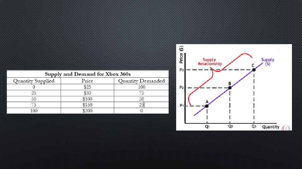 • A CHANGE IN QUANTITY SUPPLIED IS CAUSED BY A CHANGE IN THE PRICE OF A GOOD/SERVICE AND IS ILLUSTRATED ON A GRAPH AS A MOVEMENT ALONG THE SUPPLY CURVE. • SUPPLY IS A RELATIONSHIP THAT SHOWS THE QUANTITY SUPPLIED AT EACH PRICE.