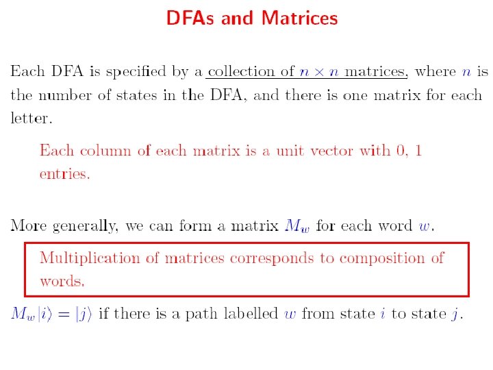 There are two paths from state 1 to state 2, which have labels sequence bb Using matrices like these we can analyze if certain transitions in graphs exist and how many of them exist. This is used in finding the languages accepted be the automata
