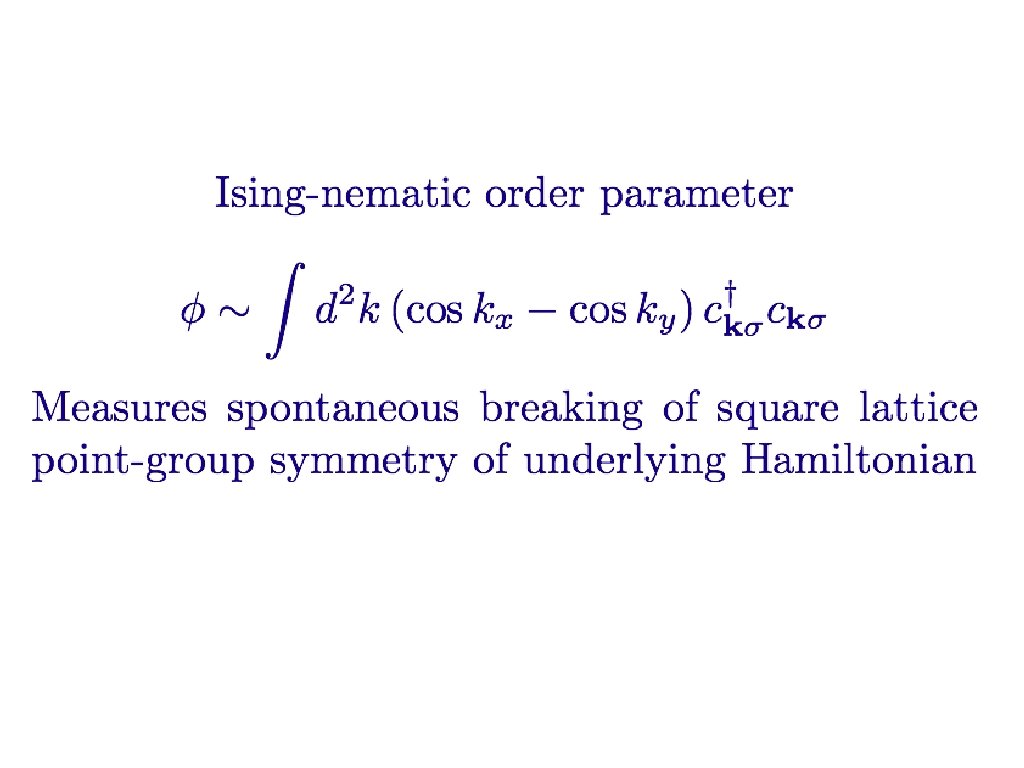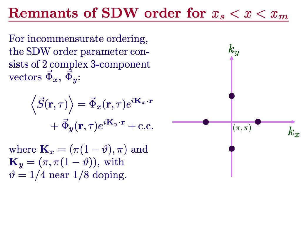 TI-n Onset of superconductivity disrupts SDW order, but VBS/CDW/ Ising-nematic ordering can survive R. K. Kaul, M. Metlitksi, S. Sachdev, and Cenke Xu, Physical Review B 78, 045110 (2008). VBS/CDW and/or Ising-nematic order