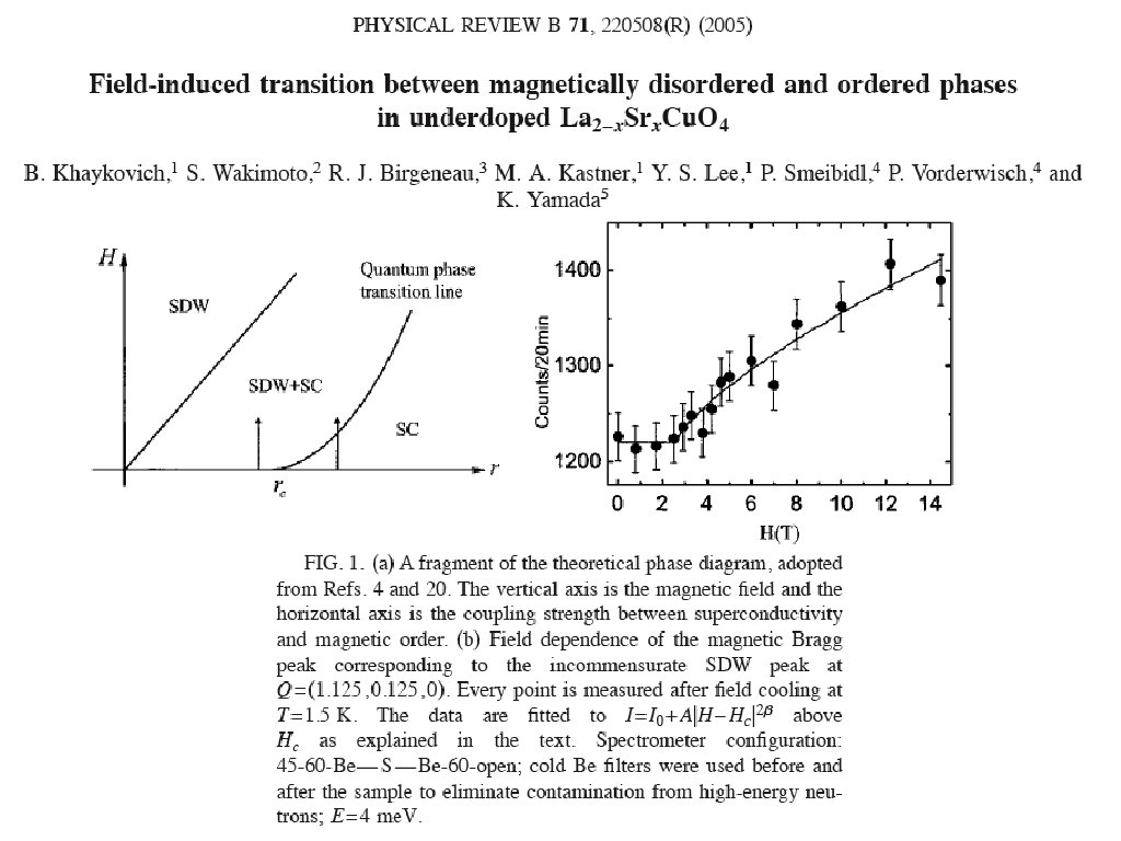 J. Chang, Ch. Niedermayer, R. Gilardi, N. B. Christensen, H. M. Ronnow, D. F. Mc. Morrow, M. Ay, J. Stahn, O. Sobolev, A. Hiess, S. Pailhes, C. Baines, N. Momono, M. Oda, M. Ido, and J. Mesot, Physical Review B 78, 104525 (2008). J. Chang, N. B. Christensen, Ch. Niedermayer, K. Lefmann, H. M. Roennow, D. F. Mc. Morrow, A. Schneidewind, P. Link, A. Hiess, M. Boehm, R. Mottl, S. Pailhes, N. Momono, M. Oda, M. Ido, and J. Mesot, Phys. Rev. Lett. 102, 177006