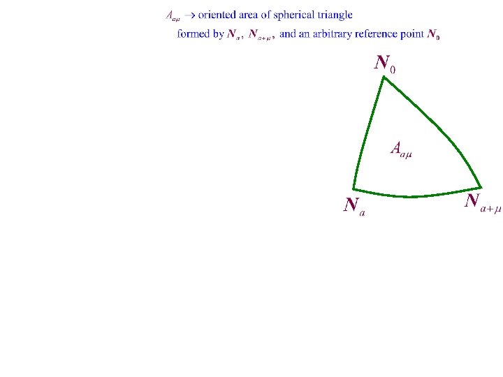 Change in choice of n 0 is like a “gauge transformation” (ga is the oriented area of the spherical triangle formed by Na and the two choices for N 0 ). The area of the triangle is uncertain modulo 4 p, and the action is invariant under These principles strongly constrain the effective action for Aam which provides description of the paramagnetic phase