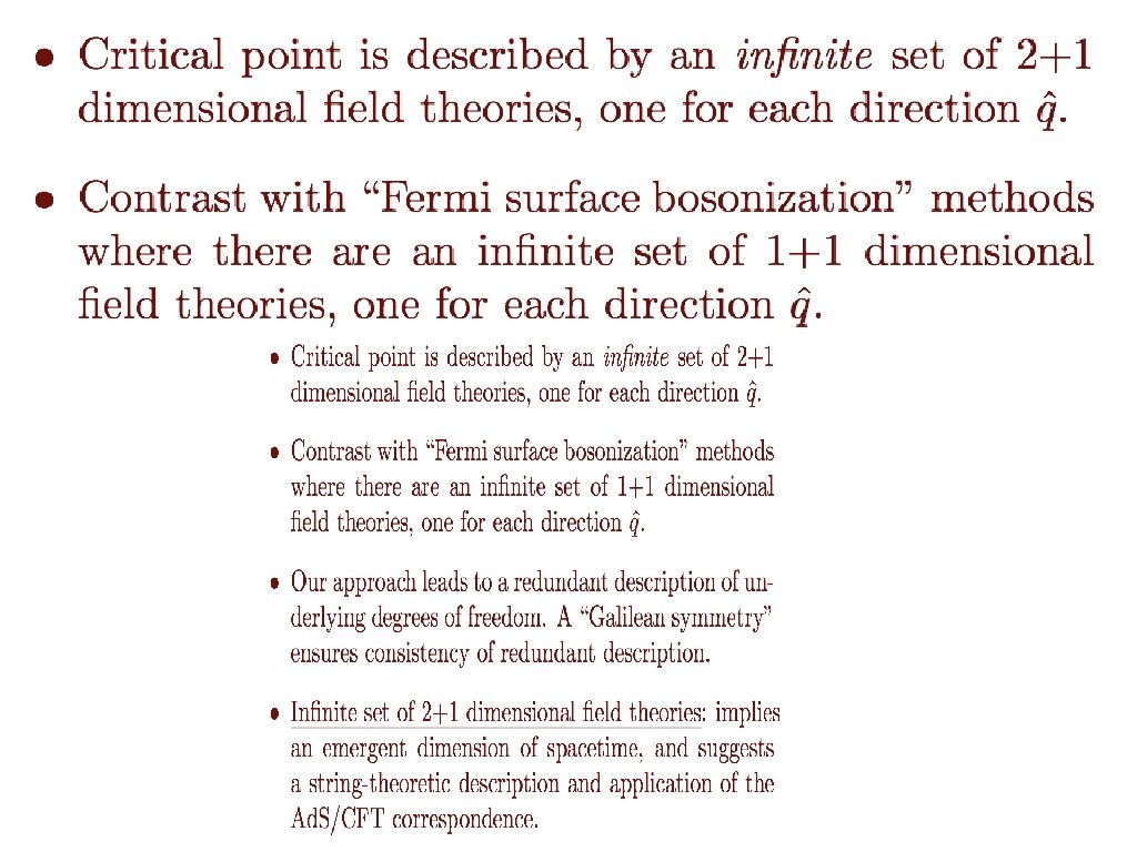Ad. S/CFT correspondence The quantum theory of a black hole in a 3+1 dimensional negatively curved Ad. S universe is holographically represented by a CFT (the theory of a quantum critical point) in 2+1 dimensions 3+1 dimensional Ad. S space Maldacena, Gubser, Klebanov, Polyakov, Witten