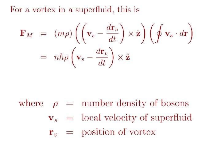 Dual picture: The vortex is a quantum particle with dual “electric” charge n, moving in a dual “magnetic” field of strength = h×(number density of Bose particles)