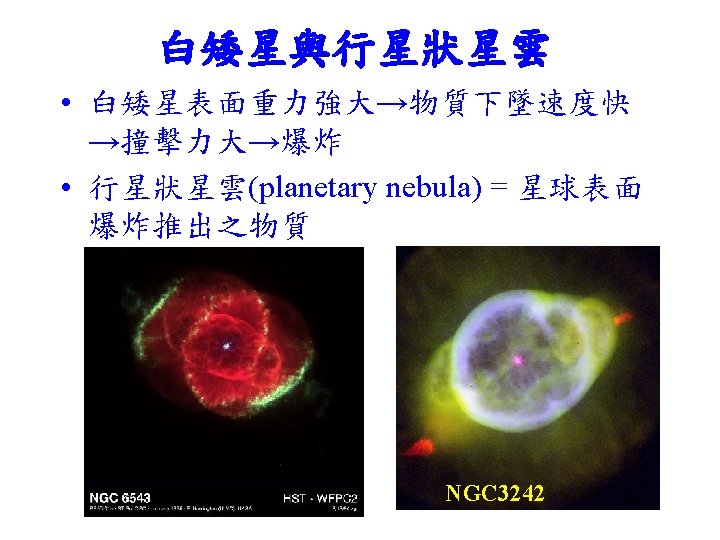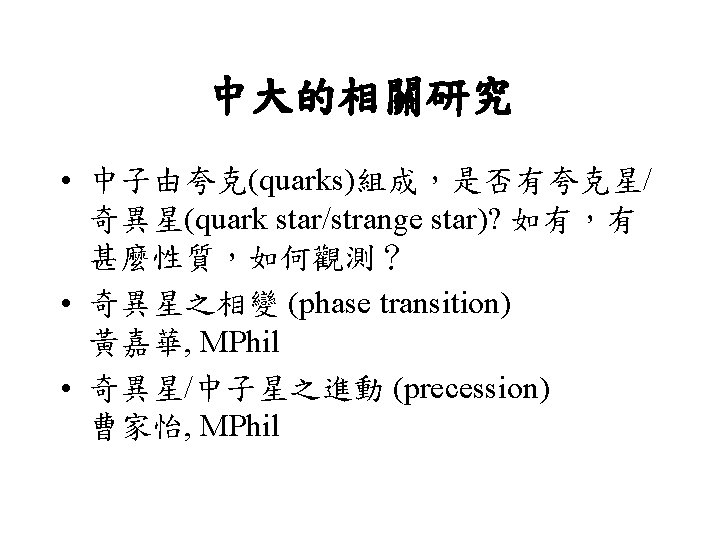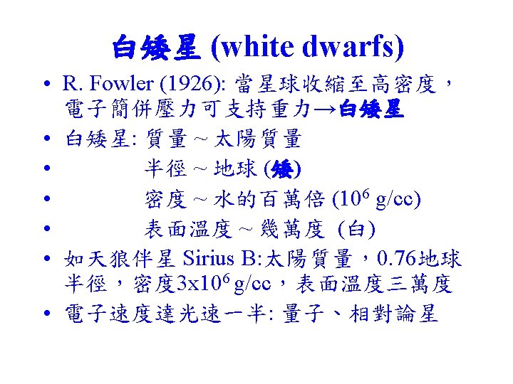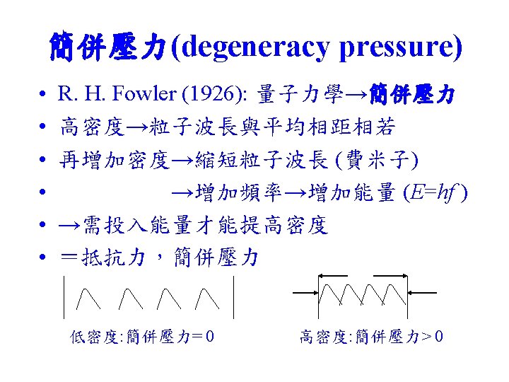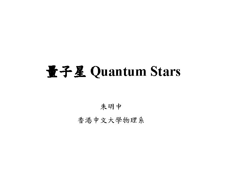 量子星 Quantum Stars • • • 恆星之死 量子力學–波粒二象性 簡併壓力 degeneracy pressure 白矮星 white dwarfs 中子星及脈沖星neutron stars and pulsars