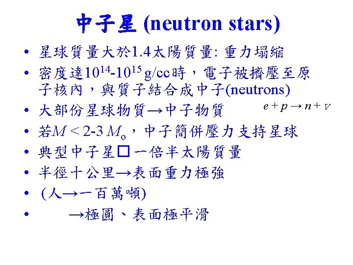 中子星 Neutron Stars ~50 km Photo credit: NASA http: //www. fourmilab. ch/earthview/vplanet. html