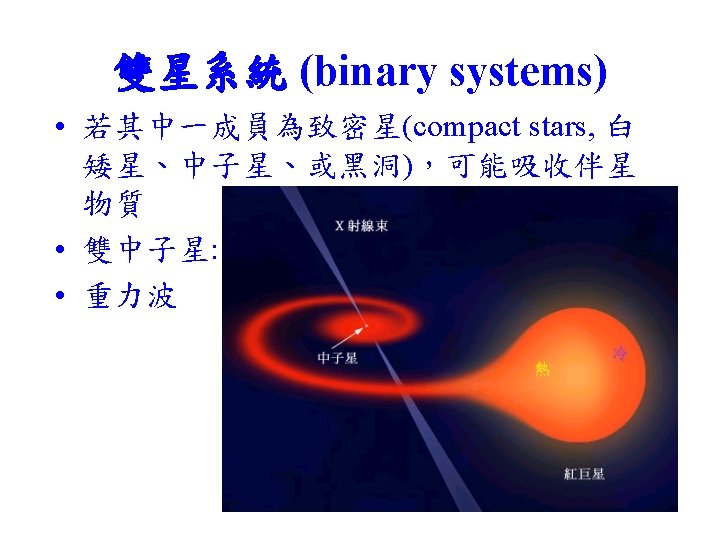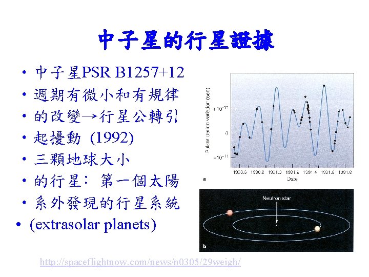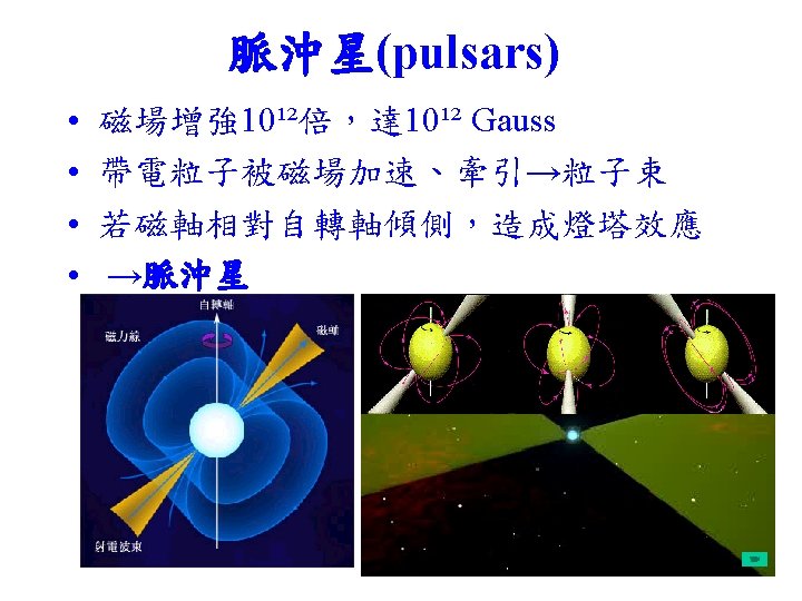 雙脈沖星 PSR J 0737 -3039 A, B 3/2004發 現,準確 驗證廣義 相對論 Diagram and animation courtesy Jordrell Bank Observatory http: //www. jb. man. ac. uk/research/pulsar/doublepulsar/