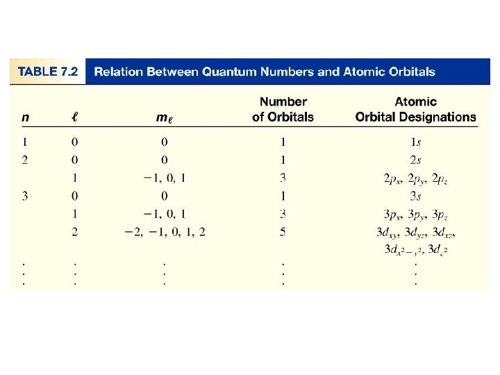 Quantum Numbers and Atomic Orbitals • The principal quantum number(n) represents the “shell number” in which an electron “resides. ” The larger the n is, the greater the distance of the electron in the orbital from the nucleus the larger the orbital. Higher the energy