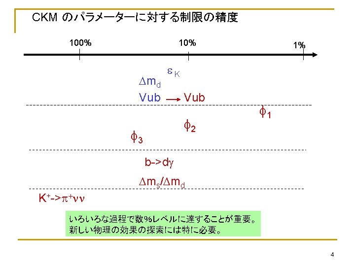 B物理に対するNew Physics の現れ方 2003 SLAC WS Proceedings SUSY Large Extra Dimension model 様々なシグナルのパターンをみることが模型を区別するために重要 11