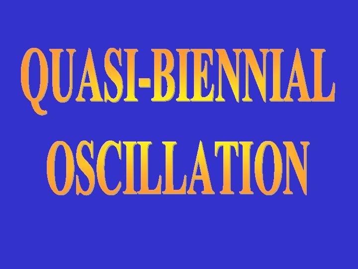 QBO | MEAN ZONAL WINDS IN THE STRATOSPHERE NEAR 30 h. Pa LEVEL BETWEEN 30°N AND 30°S SHOW ALTERNATING EASTERLY AND WESTERLY REGIMES. | EASTERLY PHASE IS PREVALENT DURING ODD YEARS AND WESTERLY DURING EVEN YEARS. | REED (1964) STUDIED THE WINDS AND TEMPERATURES OVER TROPICS AND SEPARATED THE ANNUAL AND 26 MONTHS COMPONENT OSCILLATIONS. | PROBERT & JONES (1964) FOUND THE PERIODS VARYING FROM 20 TO 29 MONTHS. IT IS GENERALLY AGREED THAT THE OSCILLATION IS NOT TRULY BIENNIAL AND THE TERM QBO OR 26 MONTH OSCILLATION IS GENERALLY ACCEPTED.