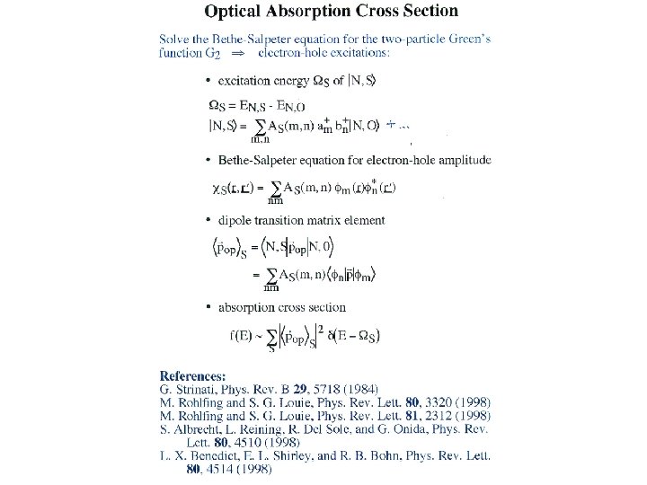 Collaborators Bulk and surface quasiparticle studies: Mark Hybertsen Eric Shirley John Northrup Michael Rohlfing, … Excitons and optical properties of crystals, surfaces, polymers, and clusters: Michael Rohlfing Eric Chang Sohrab Ismail-Beigi, …
