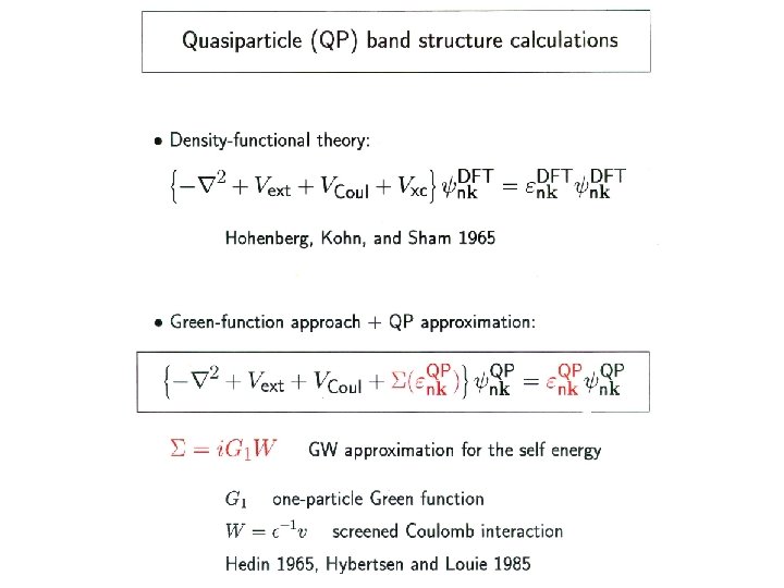 Quasiparticle Band Gaps: GW results vs experimental values Materials include: In. Sb, In. As Ge Ga. Sb Si In. P Ga. As Cd. S Al. Sb, Al. As Cd. Se, Cd. Te BP Si. C C 60 Ga. P Al. P Zn. Te, Zn. Se c-Ga. N, w-Ga. N In. S w-BN, c-BN diamond w-Al. N Li. Cl Fluorite Li. F Compiled by E. Shirley and S. G. Louie