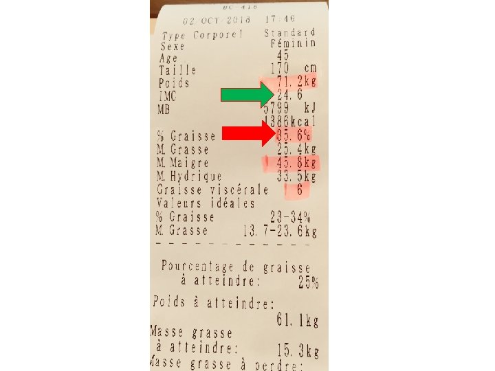 Le poids idéal? n BMI = notion subjective n La réponse n’est ni ponctuelle ni exclusive Correspond souvent au poids de forme (bien-être) et/ou au poids auquel on se plait (silhouette) COMPOSITION CORPORELLE