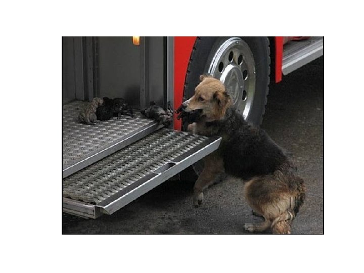Lors d'une réponse à un appel tôt le matin pour un incendie de maison, les pompiers ont été surpris. . . Une chienne qui a risqué sa vie pour sauver ses chiots de la maison en feu. . . la chienne a fait des aller-retour dans la maison, en mettant ses chiots âgés de 10 jours dans l'endroit le plus sûr qu'elle a pu trouver - un camion de pompiers!. . .