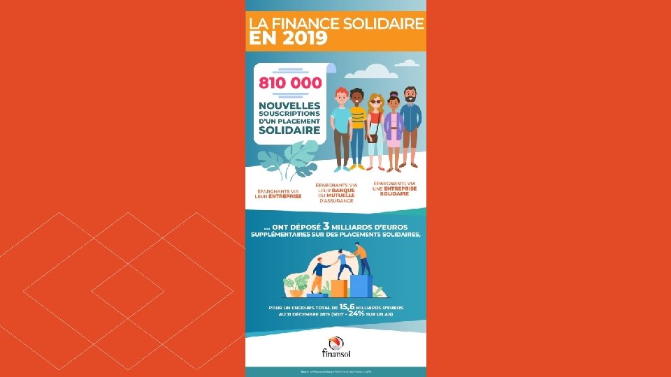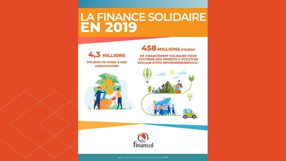 Qu’est-ce que la finance solidaire ? Les épargnants solidaires C’est le circuit reliant un épargnant solidaire à un projet à forte utilité sociale et/ou environnementale qu’il a permis de financer grâce à son argent. Les placements solidaires Les entreprises solidaires