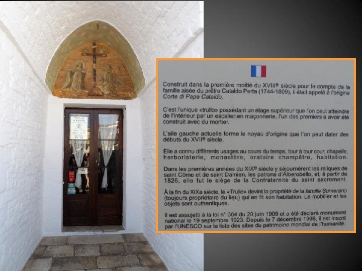 Nous y découvrons les « trulli » (un trullo, des trulli) Ce sont des constructions en pierres plates, non maçonnées, utilisées comme habitations ou bâtiments agricoles …