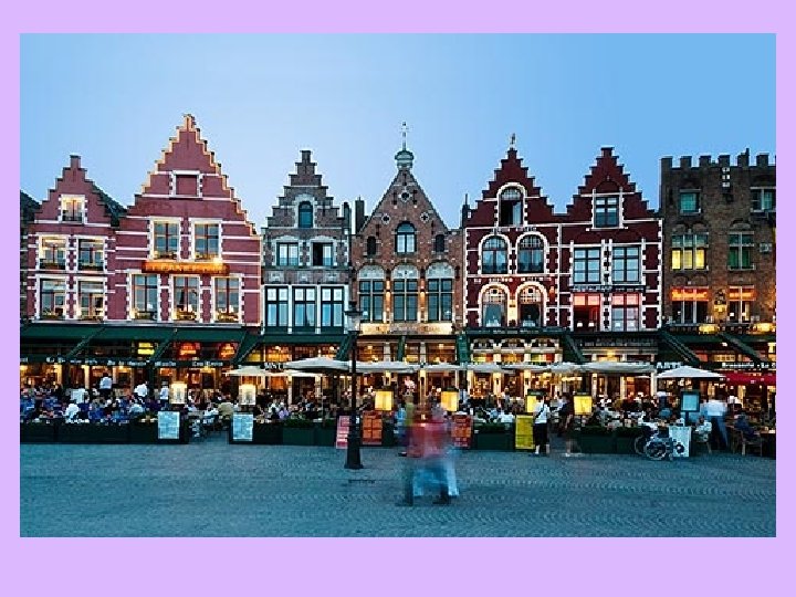 Where is Bruges? : Bruges (Brugge in Dutch), the capital and largest city of the province of West Flanders in Belgium, is located in the northwest corner of Belgium. Bruges is a mere 44 km from Ghent to the southeast and 145 from Brussels. See the location map on the right. Bruges - An Introduction: The medieval center of Bruges is remarkably well preserved, and is a UNESCO world heritage site. Bruges had it's golden age around 1300, when it became one of the most prosperous cities of Europe. Around 1500, the Zwin channel, which provided Bruges with its access to the sea, started silting up, and Bruges began losing its economic strength to Antwerp. People began to abandon the center, which helped to preserve its medieval features. Today Bruges is once again a thriving community with a population of 120, 000 people, and the medieval center is one of the most beautiful in Europe. On appelle souvent Bruges « la Venise du Nord » grâce à ses beaux canaux.