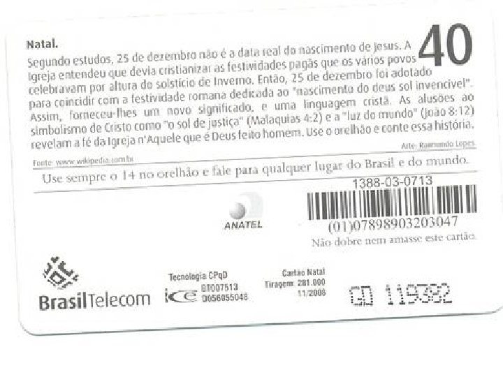 “A festa do Natal não estava incluída entre as primeiras festividades da Igreja. . . Os primeiros indícios dela são provenientes do Egito. . . os costumes pagãos relacionados com o princípio do ano se concentravam na festa do Natal. ” Fonte: Enciclopédia Católica, edição de 1911. “A data real deste acontecimento [do nascimento de Jesus]. . . Não foi ainda satisfatoriamente reconhecida. O dia 25 de dezembro aparece pela primeira vez no calendário de Philocalus (354). No ano 245, o teólogo Orígenes repudiava a idéia de se festejar o nascimento de Cristo ‘como se fosse ele um faraó’. ” Fonte: Enciclopédia Barsa, 1968, Vol. 9, pág. 437. “O Natal de acordo com muitas autoridades da história eclesiástica, não se celebrou nos primeiros séculos da Igreja. O costume dos Nazarenos não era celebrar o nascimento do Messias, e sim a sua morte. ” Fonte: Enciclopédia Americana, edição 1944.