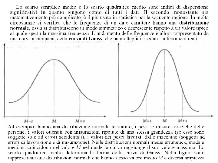 Un altro indice di dispersione è lo scarto quadratico medio, s, cosi definito: Calcoliamo, per ciascuna sequenza di dati dell’Esempio precedente, lo scarto quadratico medio dal valore 170.