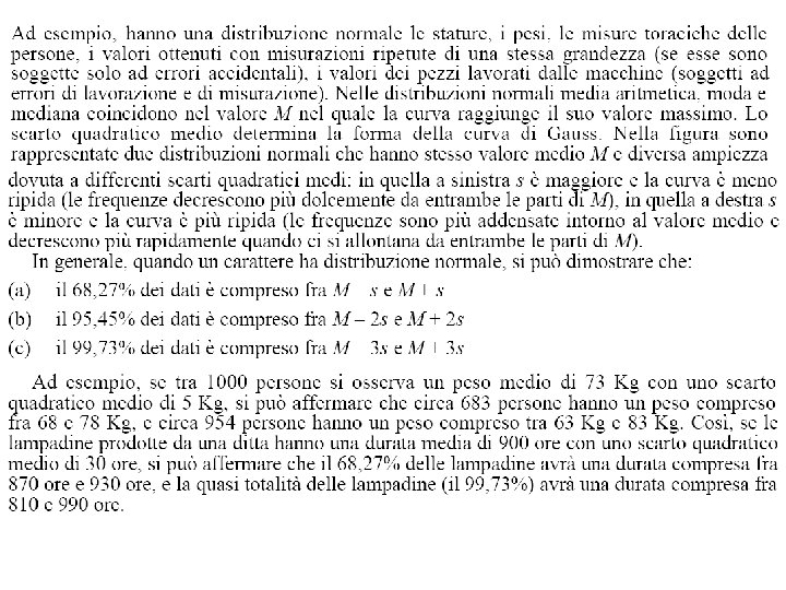 La più immediata misura della variabilità è il campo di variazione, cioè la differenza fra il minimo e il massimo dei valori osservati. Nel precedente Esempio 19, il campo di variazione è 5 cm per la serie di dati (a), 17 cm per (b), 220 cm per (c) e risulta notevolmente significativo. In genere però il campo di variazione, che tiene conto soltanto dei due valori estremi e non è influenzato in alcun modo da quelli intermedi, costituisce una misura troppo rozza della variabilità. Assegnati n valori X 1, X 2, . . . , Xn e indicata con M la media giudicata più opportuna nel caso in esame, appare naturale prendere in considerazione gli scarti da essa, ossia i valori X 1 – M, X 2 – M, . . . , Xn – M. Si definisce scarto semplice medio da una media M (ad esempio la media aritmetica) la media aritmetica dei valori assoluti degli scarti da M.
