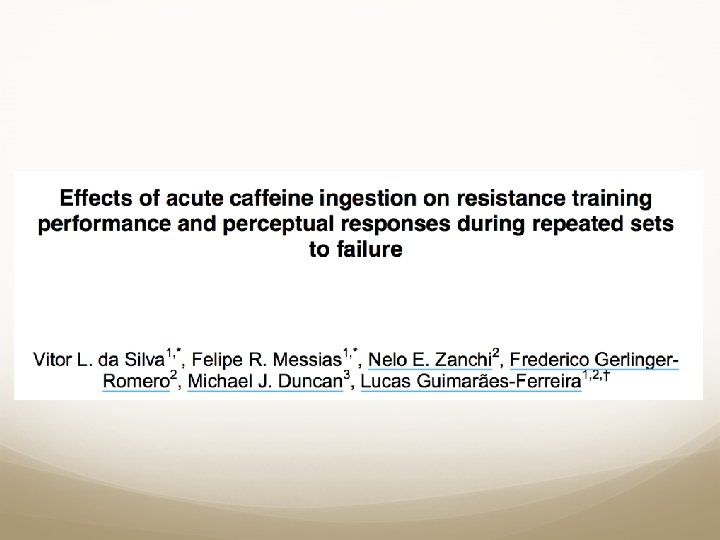 ![Da Silva et al RTF au bench press avec caféine (F[1, 13]=6. 16, p=0. Da Silva et al RTF au bench press avec caféine (F[1, 13]=6. 16, p=0.](https://slidetodoc.com/presentation_image/be1eb22e04e1a6c55bb676acdbd534fc/image-12.jpg)