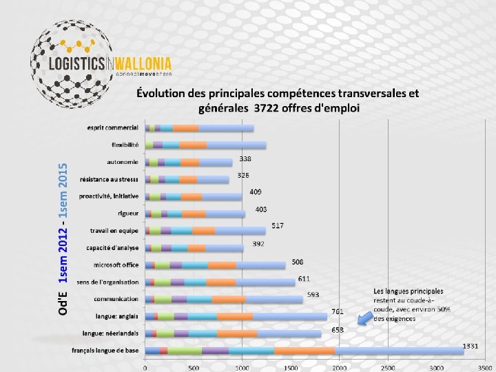 Analyse swot Forces et faiblesses de la Wallonie Strenghts (forces) Localisation Bon positionnement international (LPI, Cushman & Wakefield) Coût du terrain et coûts associés raisonnables Excellente infrastructure (4 modes de transport) Excellent potentiel de développement Main d’œuvre disponible Weaknesses (faiblesses) Absence d’image de marque Coût du travail Gestion de l’infrastructure (délais, moyens…) Fragmentation du secteur Manque de compétences (management, langues) Syndicats Opportunities (opportunités) Augmentation du trafic dans les ports de mer Augmentation des volumes à transporter Préoccupations environnementales Développement de nouveaux projets tels que Seine. Nord et CAREX Threads (menaces) Nos voisins ne nous attendent pas Processus de décision trop long Convervatisme et immobilisme