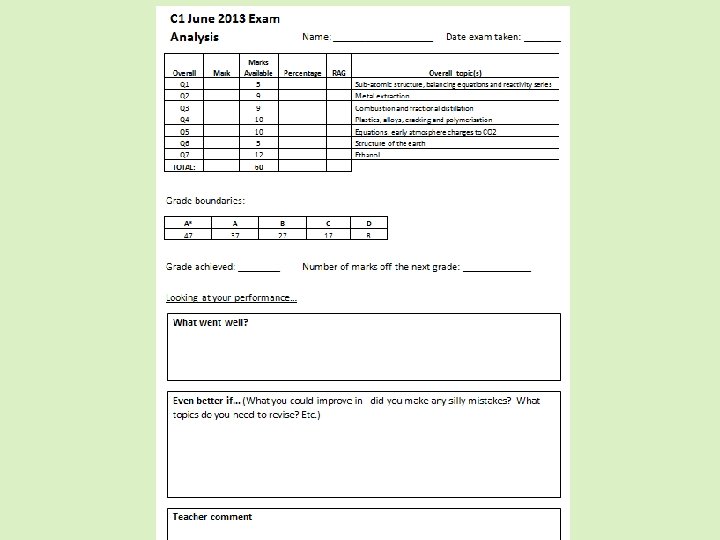 Strategies I’ve used 1. Amber topics: – Further practice through lesson starters (often different and unrelated to the lesson content) – Peer teaching 2. Red topics (<35%) need re-teaching 3. Regular low-stakes multiple choice / short answer quizzes 4. Specific homework for select topics 5. Pupil self assessment