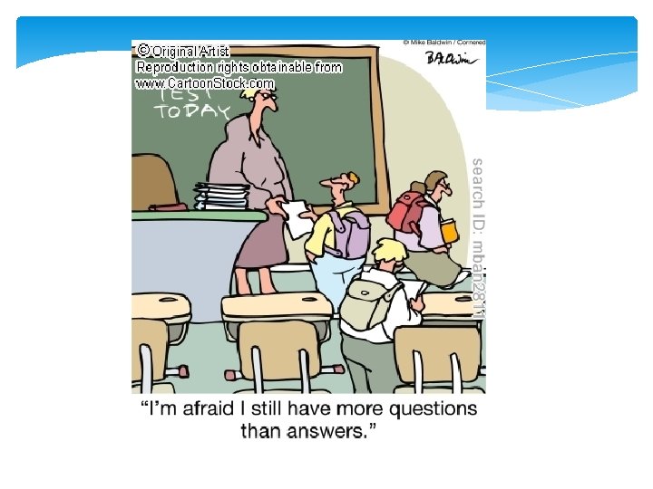 Unproductive questions Questioning can fail because: questioning techniques are inappropriate for the material. there may be an unconscious gender bias. there may be an unconscious bias towards most able or more demanding students don’t have enough thinking time. (1 second average) learners don’t have any idea as to whether they are the only ones to get it wrong/right. learners fear being seen by their peers to be wrong. questions are too difficult. questions are too easy.