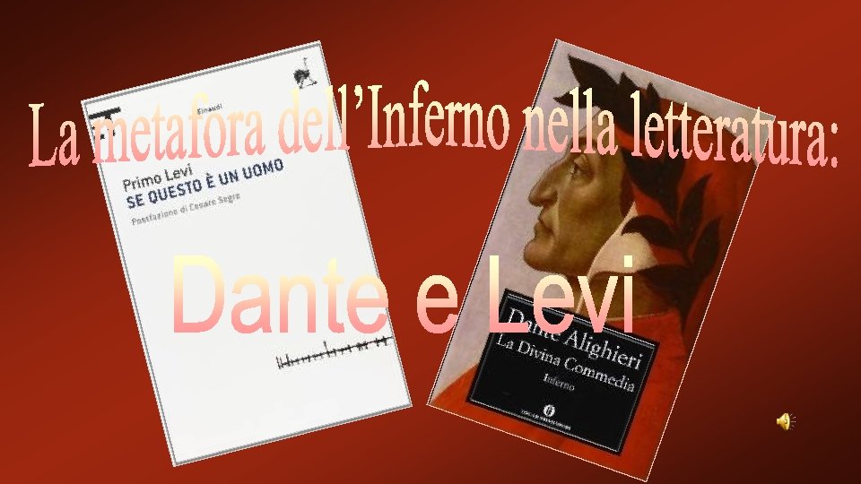 Questo lavoro nasce dal progetto di continuità tra la classe 2°A S. I. A. dell’Istituto Omnicomprensivo “Della Rovere” di Urbania e la 3°C dell’Istituto “Luigi Carnevali” di Mercatello sul Metauro. Si tratta di un confronto tra due opere, rispettivamente “Se questo è un uomo” di Primo Levi e “L’Inferno” di Dante, scritte in epoche molto diverse, ma aventi entrambe lo stesso tema: l’Inferno. Levi, raccontando la sua storia all’interno del Lager, fa riferimento all’Inferno di Dante; il Lager di per sé ne è la metafora più evidente: “Questo è l'inferno. Oggi, ai nostri giorni, l'Inferno deve essere così, una camera grande e vuota, e noi stanchi di stare in piedi, e c'è un rubinetto che gocciola e l'acqua non si può bere, e noi aspettiamo qualcosa di certamente terribile e non succede niente e continua a non succedere niente. Ѐ come essere già morti”. Per rendere meglio l’idea del confronto tra queste due opere, abbiamo scelto di contrapporre immagini rappresentative di ciascuna.