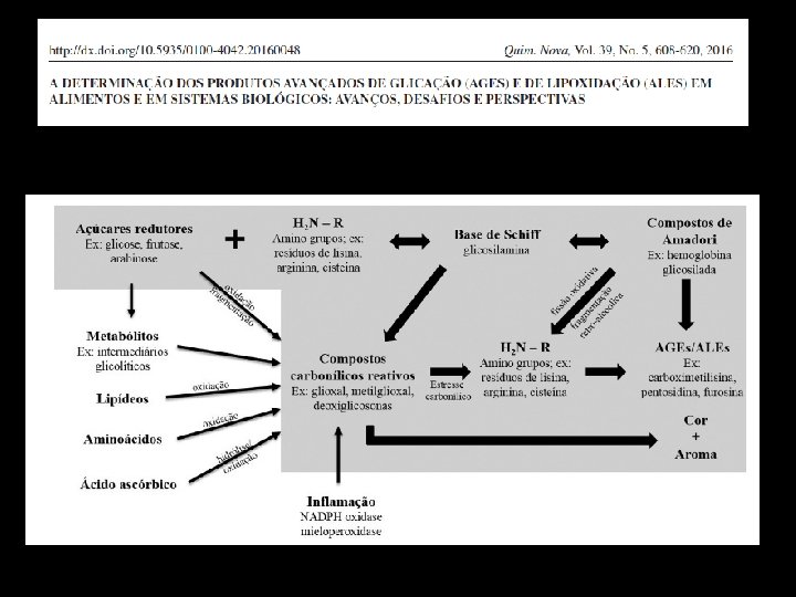 Absorção e transporte dos AGE´s 10% dos AGES ingeridos são absorvidos, sendo que 2/3 do total absorvido fica retido nos tecidos em formas reativas, como vimos no dano renal AGE provenientes da alimentação são absorvidos e transportados na circulação em associação a LDL e outros proteínas, como a albumina