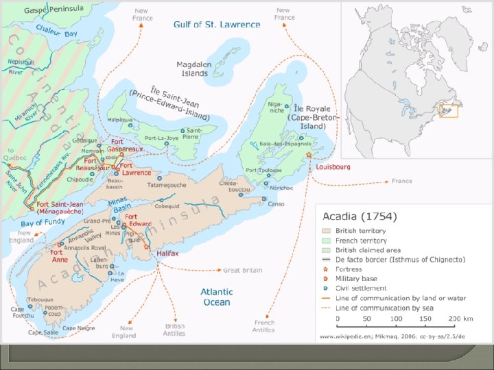 SEVEN YEARS WAR Acadians Acadia was the first permanent French settlement in North America, established at Port-Royal in 1604 During the seventeenth century, about sixty French families were established in Acadia. They developed friendly relations with the aboriginal Mi'kmaq, learning their hunting and fishing techniques.
