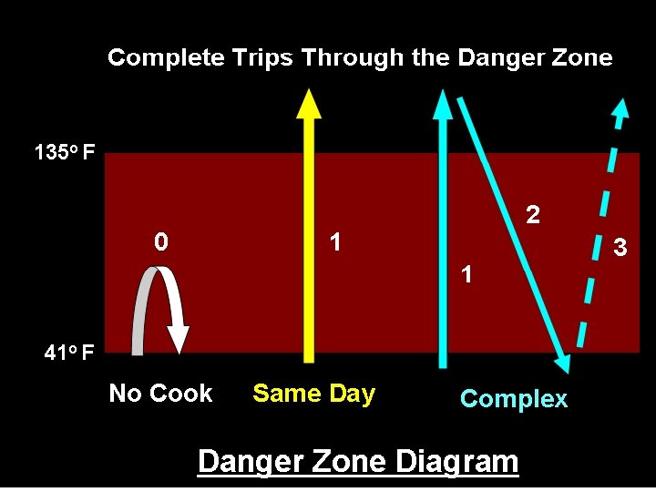Sample Process Chart Complex Food Prep Limit time in the danger zone (41 °F. – 135 °F. ) Menu Item Cooking Cooling Reheating Chili Con Carne 155 °F. for Cool to 70°F 165 ° F for 15 sec. in 2 hrs. or less 15 sec. & then to 41°F. in 4 hrs. or less. Roast Turkey 165 °F. for 15 sec. Cool to 70 °F 165 ° F for in 2 hrs. or less 15 sec. & then to 41°F. in 4 hrs. or less.