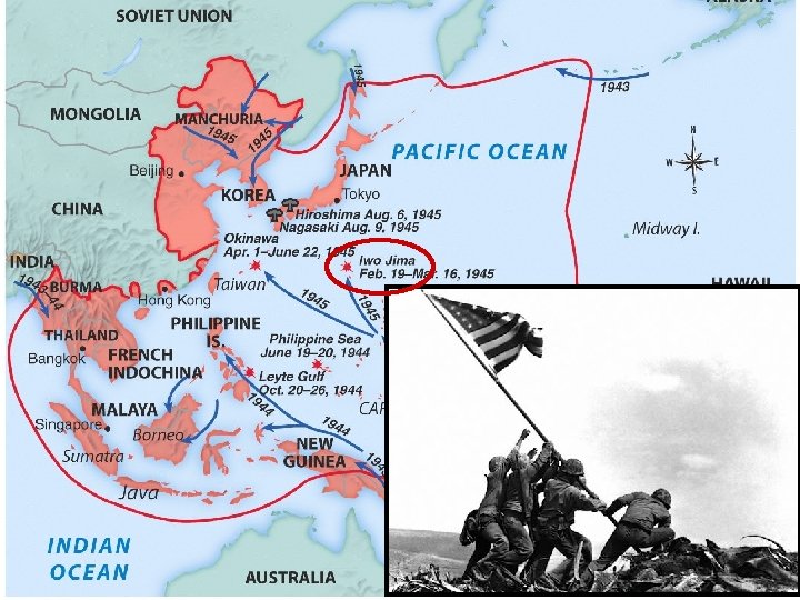 Fighting the War in the Pacific: 1943 -1945 • President Truman set Nov 1945 as the date for a land invasion of Japan. The U. S. would first need to capture Iwo Jima and Okinawa. When the last shots were fired, over 18, 000 Marines had died fighting on Iwo Jima and Okinawa. 90, 000 Japanese soldiers were dead. Over 100, 000 Okinawans perished as well.
